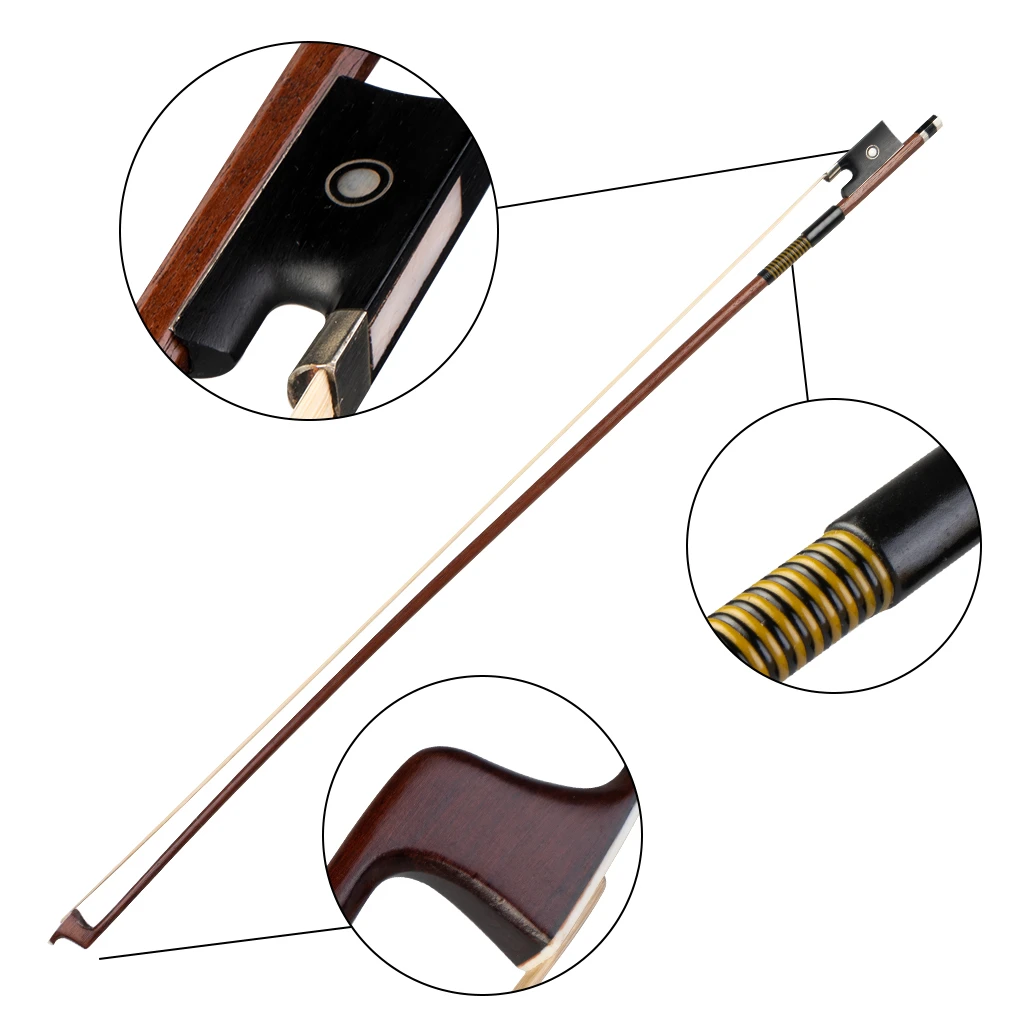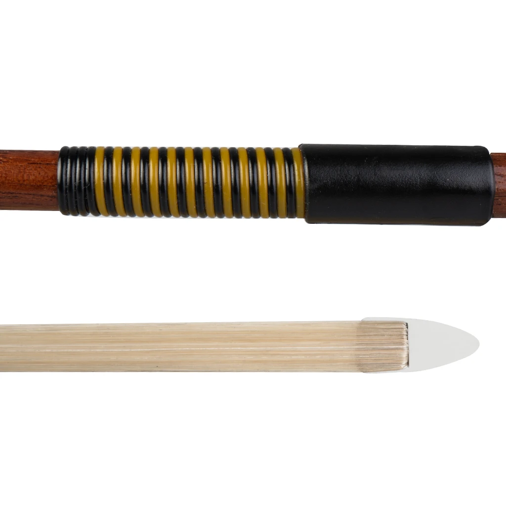 Feito à mão com crina de cavalo da mongólia, brazilwood e aperto plástico, enrolamento plástico, talão de ébano com incrustações de olho de paris.