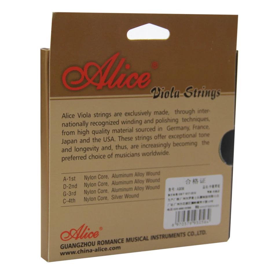 As cordas Alice são feitas exclusivamente, através de técnicas de enrolamento e polimento reconhecidas internacionalmente, a partir de material de alta qualidade proveniente da Alemanha, França, Japão e EUA. Estas cordas oferecem som e longevidade excepcional e, assim, estão se tornando cada vez mais a escolha preferida de músicos em todo o mundo