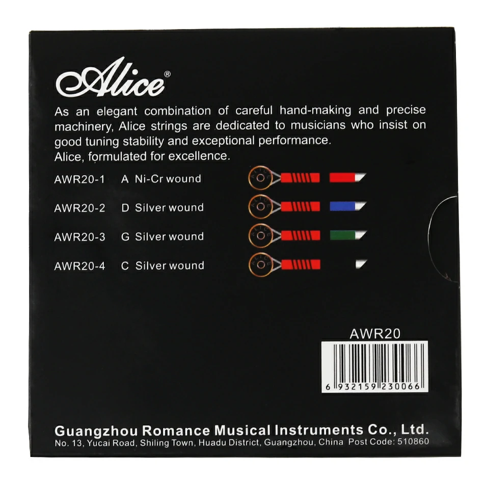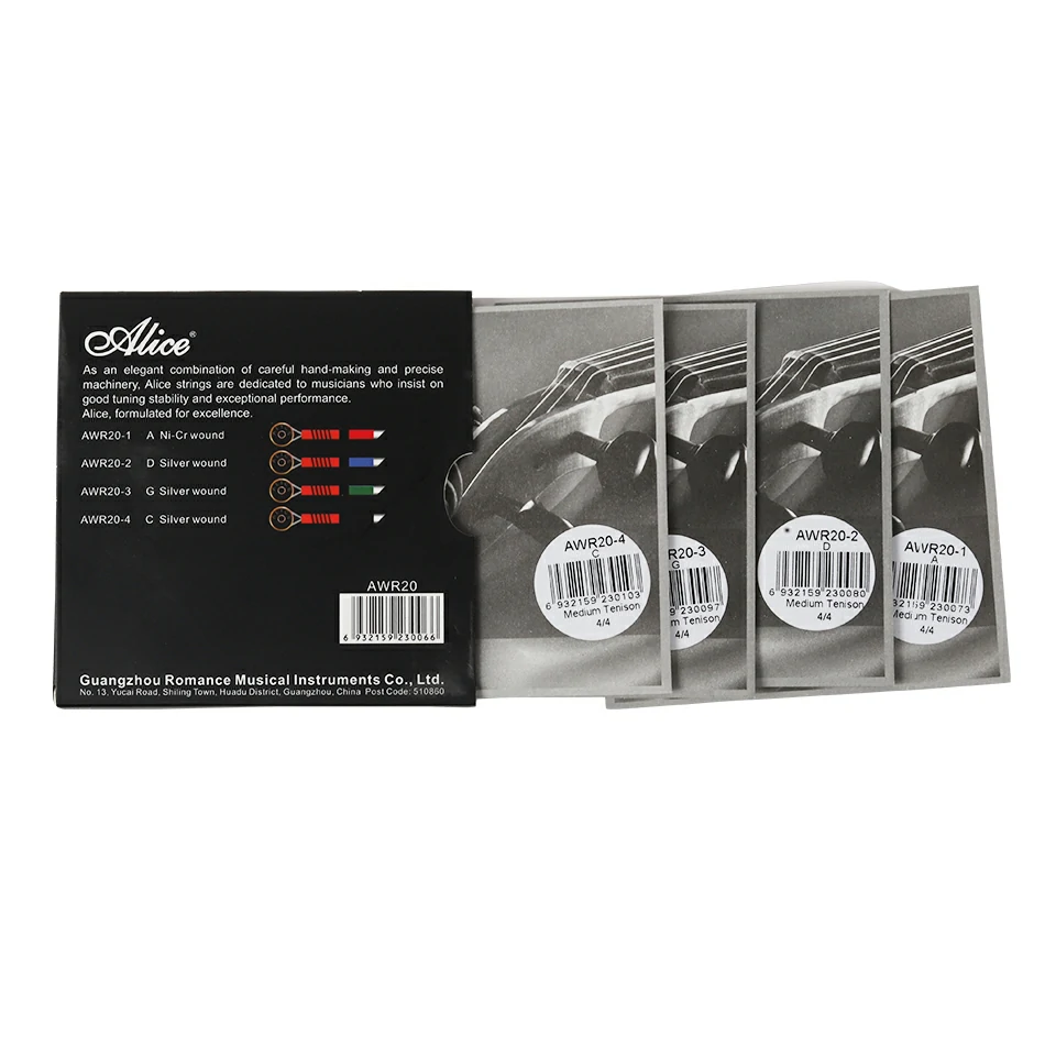 Alice corda de alta qualidade awr20 viola núcleo de aço de alto carbono e núcleo de náilon ni-cr enrolamento e enrolamento de prata 16 “tensão média